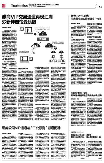 证券公司VIP通道与“三公原则”背道而驰 2014-07-11 来源:证券时报网 作者:李东亮