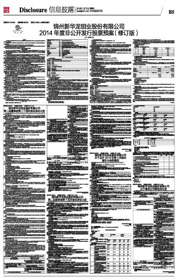 锦州新华龙钼业股份有限公司2014年度非公开发行股票预案(修订版)