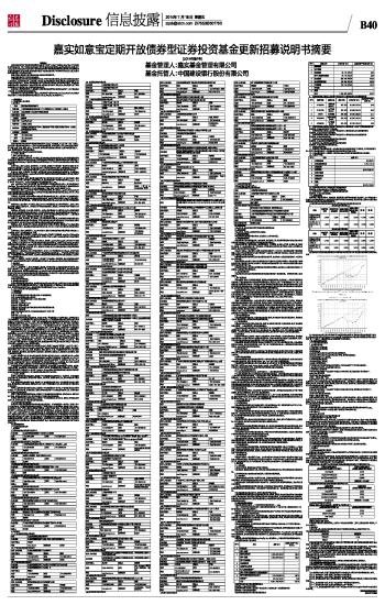 基金管理人:嘉实基金管理有限公司 基金托管人:中国建设银行股份有限公司 重要提示 嘉实如意宝定期开放债券型证券投资基金(以下简称“本基金”)根据2013年3月28日中国证券监督管理委员会《关于核准嘉实如意宝定期开放债券型证券投资基金募集的批复》(证监许可[2013]290号)和2013年4月26日《关于嘉实如意宝定期开放债券型证券投资基金募集时间安排的确认函》(基金部函[2013]299号)的核准公开发售,本基金基金合同于2013年6月4日正式生效,自该日起本基金管理人开始管理本基金。 投资有风险,投资者申购本基金时应认真阅读本招募说明书。 基金的过往业绩并不预示其未来表现。 本摘要根据基金合同和基金招募说明书编写,并经中国证监会核准。基金合同是约定基金当事人之间权利、义务的法律文件。基金投资人自依基金合同取得基金份额,即成为基金份额持有人和本基金合同的当事人,其持有基金份额的行为本身即表明其对基金合同的承认和接受,并按照《证券投资基金法》、《运作办法》、基金合同及其他有关规定享有权利、承担义务。基金投资人欲了解基金份额持有人的权利和义务,应详细查阅基金合同。 基金管理人承诺以恪尽职守、诚实信用、勤勉尽责的原则管理和运用基金资产。但不保证基金一定盈利,也不向投资者保证最低收益。 本招募说明书已经本基金托管人复核。本招募说明书所载内容截止日为2014年6月4日(特别事项注明除外),有关财务数据和净值表现截止日为2014年3月31日(未经审计)。