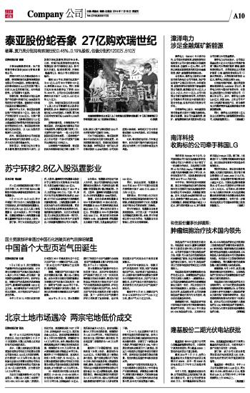 南洋科技收购标的公司牵手韩国LG 2014-07-18 来源:证券时报网 作者:徐然