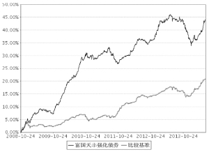 ■ §1 重要提示 ■ §2 基金产品概况 ■ §3 主要财务指标和基金净值表现 3.1 主要财务指标 单位: 人民币元 ■ 注:上述基金业绩指标不包括持有人认购或交易基金的各项费用(例如,开放式基金的申购赎回费、基金转换费等),计入费用后实际收益水平要低于所列数字。本期已实现收益指基金本期利息收入、投资收益、其他收入(不含公允价值变动收益)扣除相关费用后的余额,本期利润为本期已实现收益加上本期公允价值变动收益。 3.2 基金净值表现 3.2.1 本报告期基金份额净值增长率及其与同期业绩比较基准收益率的比较 ■ 注:过去三个月指2014年4月1日-2014年6月30日 3.2.2 自基金合同生效以来基金累计份额净值增长率变动及其与同期业绩比较基准收益率变动的比较 ■ 注:截止日期为2014年6月30日。 本基金合同生效日为2008年10月24日,建仓期6个月,即从2008年10月24日起至2009年4月23日,建仓期结束时各项资产配置比例均符合基金合同约定。 §4 管理人报告 4.1 基金经理(或基金经理小组)简介 ■ 4.2 报告期内本基金运作遵规守信情况说明 本报告期,富国基金管理有限公司作为富国天丰强化收益债券型证券投资基金的管理人严格按照《中华人民共和国证券投资基金法》、《中华人民共和国证券法》、《富国天丰强化收益债券型证券投资基金基金合同》以及其它有关法律法规的规定,本着诚实信用、勤勉尽责的原则管理和运用基金资产,以为投资者减少和分散风险,确保基金资产的安全并谋求基金长期稳定收益为目标,管理和运用基金资产,无损害基金持有人利益的行为,基金投资组合符合有关法规及基金合同的规定。 4.3 公平交易专项说明 4.3.1 公平交易制度的执行情况 本基金管理人根据相关法规要求,结合实际情况,制定了内部的《公平交易管理办法》,对证券的一级市场申购、二级市场交易相关的研究分析、投资决策、授权、交易执行、业绩评估等投资管理环节,实行事前控制、事中监控、事后评估及反馈的流程化管理。在制度、操作层面确保各组合享有同等信息知情权、均等交易机会,并保持各组合的独立投资决策权。 事前控制主要包括:1、一级市场,通过标准化的办公流程,对关联方审核、价格公允性判断及证券公平分配等相关环节进行控制;2、二级市场,通过交易系统的投资备选库、交易对手库及授权管理,对投资标的、交易对手和操作权限进行自动化控制。 事中监控主要包括组合间相同投资标的的交易方向、市场冲击的控制,银行间市场交易价格的公允性评估等。1、将主动投资组合的同日反向交易列为限制行为,非经特别控制流程审核同意,不得进行;对于同日同向交易,通过交易系统对组合间的交易公平性进行自动化处理。2、同一基金经理管理的不同组合,对同一投资标的采用相同投资策略的,必须通过交易系统采取同时、同价下达投资指令,确保公平对待其所管理的组合。 事后评估及反馈主要包括组合间同一投资标的的临近交易日的同向交易和反向交易的合理性分析评估,以及不同时间窗口下(1日、3日、5日)的季度公平性交易分析评估等。1、通过公平性交易的事后分析评估系统,对涉及公平性交易的投资行为进行分析评估,分析对象涵盖公募、年金、社保及专户产品,并重点分析同类组合(股票型、混合型、债券型)间、不同产品间以及同一基金经理管理不同组合间的交易行为,若发现异常交易行为,监察稽核部视情况要求相关当事人做出合理性解释,并按法规要求上报辖区监管机构。2、季度公平性交易分析报告按规定经基金经理或投资经理签字,并经督察长、总经理审阅签字后,归档保存,以备后查。 本报告期内公司旗下基金严格遵守公司的相关公平交易制度,未出现违反公平交易制度的情况。 4.3.2 异常交易行为的专项说明 本报告期内未发现异常交易行为。 公司旗下管理的各投资组合在交易所公开竞价同日反向交易的控制方面,报告期内本组合与其他投资组合之间未出现成交较少的单边交易量超过该证券当日成交量5%的情况,亦未受到监管机构的相关调查。 4.4 报告期内基金的投资策略和业绩表现说明 4.4.1 报告期内基金投资策略和运作分析 二季度债券市场在宽松的资金面背景下继续上涨,定向刺激政策逐步推出使得市场对国内经济企稳的预期增强,同时非标投资受到限制,推动信用债的配置需求上升,收益率水平继续下行,信用利差收窄。可转债的估值也得到修复,整体上涨。 报告期内本基金坚持以信用产品为主要标的的投资策略,在收益率下行伴随信用利差收窄的过程中适度降低了对信用债券的投资比例并优化持仓结构,同时在可转债的上涨中也逐步降低了对可转债的投资比例。信用债券的投资收益为本季度基金收益的主要来源,可转债的投资收益增强了基金的投资业绩。 4.4.2 报告期内基金的业绩表现 本报告期,本基金份额净值增长率为5.68%,同期业绩比较基准收益率为3.28%。 §5 投资组合报告 5.1 报告期末基金资产组合情况 ■ 5.2 报告期末按行业分类的股票投资组合 注:本基金本报告期末未持有股票资产。 5.3 报告期末按公允价值占基金资产净值比例大小排序的前十名股票投资明细 注:本基金本报告期末未持有股票资产。 5.4 报告期末按债券品种分类的债券投资组合 ■ 5.5 报告期末按公允价值占基金资产净值比例大小排序的前