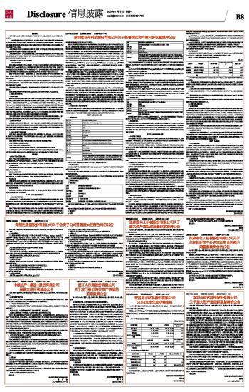 证券代码:002564 证券简称:张化机 公告编号:2014-068 张家港化工机械股份有限公司关于 归还暂时用于补充流动资金的部分 闲置募集资金的公告 本公司及董事会全体成员保证信息披露的内容真实、准确和完整,没有虚假记载、误导性陈述或重大遗漏。 张家港化工机械股份有限公司(以下简称"公司") 于2013年8月9日召开了第二届董事会第十二次会议,会议审议通过了《关于使用部分闲置募集资金暂时性补充流动资金的议案》:同意公司在不影响募投项目建设和募集资金正常使用的前提下,使用人民币28,000万元的暂时闲置募集资金暂时性补充流动资金,使用期限自股东大会审议批准该议案之日起不超过十二个月。到期将以自有资金归还到公司募集资金专用账户。2013 年8月26日,公司召开2013年第二次临时股东大会,审议批准了《关于使用部分闲置募集资金暂时性补充流动资金的议案》。使用具体期限为自2013年8月26日起到2014年8月26日止。具体内容详见2013年8月10日巨潮资讯网(www.cninfo.com.cn)上的《关于使用部分闲置募集资金暂时性补充流动资金的公告》(公告编号:2013-62)。 2014年7月17日,公司已将上述资金全部归还到公司募集资金专用帐户。 公司已将上述募集资金的归还情况通知保荐机构及保荐代表人。 特此公告。 张家港化工机械股份有限公司 董事会 2014年7月21日 本版导读: