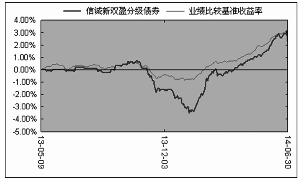 基金管理人:信诚基金管理有限公司 基金托管人:中国建设银行股份有限公司 报告送出日期:2014年7月21日 §1 重要提示 基金管理人的董事会及董事保证本报告所载资料不存在虚假记载、误导性陈述或重大遗漏,并对其内容的真实性、准确性和完整性承担个别及连带责任。 基金托管人中国建设银行股份有限公司根据本基金合同规定,于2014年7月16日复核了本报告中的财务指标、净值表现和投资组合报告等内容,保证复核内容不存在虚假记载、误导性陈述或者重大遗漏。 基金管理人承诺以诚实信用、勤勉尽责的原则管理和运用基金资产,但不保证基金一定盈利。 基金的过往业绩并不代表其未来表现。投资有风险,投资者在作出投资决策前应仔细阅读本基金的招募说明书。 本报告中财务资料未经审计。 本报告期自2014年4月1日起至6月30日止。 §2 基金产品概况 ■ §3 主要财务指标和基金净值表现 3.1 主要财务指标 单位:人民币元 ■ 注:1、上述基金业绩指标不包括持有人认购或交易基金的各项费用,计入费用后实际收益水平要低于所列数字。 2、本期已实现收益指基金本期利息收入、投资收益、其他收入(不含公允价值变动收益)扣除相关费用后的余额,本期利润为本期已实现收益加上本期公允价值变动收益。 3.2 基金净值表现 3.2.1 本报告期基金份额净值增长率及其与同期业绩比较基准收益率的比较 ■ 3.2.2 自基金合同生效以来基金累计净值增长率变动及其与同期业绩比较基准收益率变动的比较 ■ 注:本基金建仓期自2013年5月9日至2013年11月8日。按照基金合同的约定,本基金自基金合同生效日起不超过六个月内完成建仓,建仓日结束时资产配置比例符合本基金基金合同规定。 §4 管理人报告 4.1 基金经理(或基金经理小组)简介 ■ 注:1.上述任职日期、离任日期根据本基金管理人对外披露的任免日期填写。 2.证券从业的含义遵从行业协会《证券业从业人员资格管理办法》的相关规定。 4.2 管理人对报告期内本基金运作遵规守信情况的说明 在本报告期内,本基金管理人严格按照《证券投资基金法》和其他相关法律法规的规定以及《信诚新双盈分级债券型证券投资基金基金合同》、《信诚新双盈分级债券型证券投资基金招募说明书》的约定,本着诚实信用、勤勉尽职的原则管理和运用基金财产。本基金管理人通过不断完善法人治理结构和内部控制制度,加强内部管理,规范基金运作。本报告期内,基金运作合法合规,没有发生损害基金份额持有人利益的行为。 4.3 公平交易专项说明 4.3.1 公平交易制度的执行情况 根据中国证监会颁布的《证券投资基金管理公司公平交易制度指导意见》,以及公司拟定的《信诚基金公平交易管理制度v1.2》,公司采取了一系列的行动实际落实公平交易管理的各项要求。各部门在公平交易执行中各司其职,投资研究前端不断完善研究方法和投资决策流程,确保各投资组合享有公平的投资决策机会,建立公平交易的制度环境;交易环节加强交易执行的内部控制,利用恒生交易系统公平交易相关程序,及其它的流程控制,确保不同基金在一、二级市场对同一证券交易时的公平;公司同时不断完善和改进公平交易分析系统,在事后加以了严格的行为监控,分析评估以及报告与信息披露。当期公司整体公平交易制度执行情况良好,未发现有违背公平交易的相关情况。 4.3.2 异常交易行为的专项说明 本报告期内,未发现本基金有可能导致不公平交易和利益输送的异常交易。 报告期内,未出现参与交易所公开竞价同日反向交易成交较少的单边交易量超过该证券当日成交量5%的交易。 4.4 报告期内基金的投资策略和运作分析 2014年一季度,受传统春节因素的扰动,非标资产收缩、淘汰落后产能、钱荒后遗症等多方面因素影响,融资增速持续下滑,然而实体经济利率维持高位,投资和消费增速出现明显下降,经济数据创新低。通胀方面总体偏低,春节期间食品价格的涨幅低于季节性,猪肉还出现了反季节性的持续下跌。 进入二季度,政府不断推出系列微刺激措施:加快基建项目审批、加快铁路建设、加快财政支出、棚户区改造以及在选定行业中实施扶持,同时采取定向降准、公开市场连续净投放、降低社会融资成本等手段稳定经济增长,五月份数据显示工业增速企稳,消费和出口增速均有不同程度提高,中采PMI和汇丰PMI出现反弹,二季度经济环比增速有望回升。市场对经济下滑及地方债务风险担忧情绪有所减弱。但受到中国经济潜在增速下台阶、地产自然周期向下等因素的制约,经济未来出现明显回升的可能性小。通胀方面,受猪肉、鸡蛋和鲜果上涨带动的影响,CPI出现2.5%的年内高点,但预计单月超过3%的概率较小,更多是跟随基数波动。 二季度债市延续前一季上涨行情,收益率曲线全面下移。利率品中长端下行幅度较大;信用债方面,之前市场普遍担忧的供给冲击、大量债务到期、企业盈利下滑以及信用跟踪评级调整并未形成明显冲击,相反在资金面驱动下,出现可观涨幅。分品种而言,中高等级信用债表现最佳,低评级以及“垃圾债”也令投资人获得良好回报,城投平台发行主体备受青睐。房地产投资回落、银行风险偏好下降使得资金需求下降、价格下跌。直至年中时点临近,虽然IPO重启对资金面有一定阶段性影响,但市场流动性明显好于去年同期。 正当