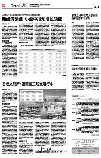异动股扫描 2014-07-23 来源:证券时报网 作者: