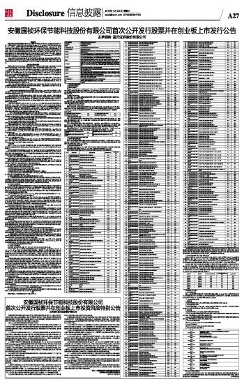 安徽国祯环保节能科技股份有限公司首次公开发行股票并在创业板上市发行公告