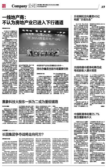 一线地产商:不认为房地产业已进入下行通道