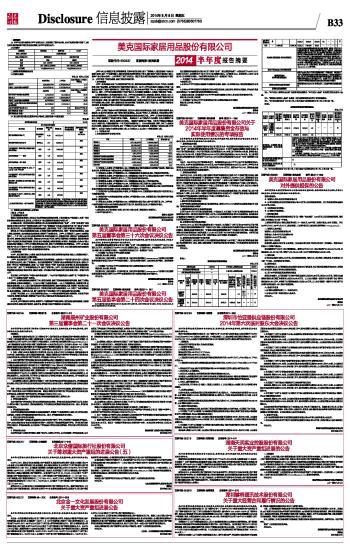 美克国际家居用品股份有限公司2014半年度报告摘要