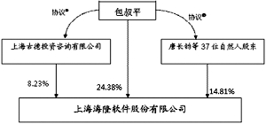 (3)前10名优先股股东持股情况表 公司报告期无优先股股东持股情况。 (4)控股股东或实际控制人变更情况 公司不存在控股股东的情况。 报告期内,公司实际控制人未发生变更。为公司董事长兼总经理包叔平先生。 2013年12月20日,包叔平先生通过公司公告了要约收购报告书摘要,拟向公司除收购人以外的其他全体股东发出部分要约收购,收购人为包叔平及其一致行动人,收购主体为包叔平。2014年2月13日,中国证监会对包叔平及其一致行动人公告要约收购报告书无异议,要约收购期限自2014年4月8日开始,至2014年5月7日,共30个自然日。 2014年5月14日,公司公告了《要约收购情况报告暨复牌公告》,经确认的预受要约股份数量为23,345,174股,均为无限售条件流通股,相关股份转让结算和过户等级手续已办理完毕。要约收购完成后,包叔平及其一致行动人共持有53,736,538股,占公司总股本的47.42%。 截止报告期末,公司与实际控制人之间的产权及控制关系如下图所示: ■ 3、管理层讨论与分析 2014年上半年,公司根据董事会制定的经营计划积极开展各项工作,紧密围绕将公司打造成为“基于互联网平台集信息服务和软件外包为一体的综合服务商”这一战略目标,在保持面向海外的软件外包业务持续稳步发展的基础上,继续积极布局国内市场,并特别注重互联网、移动互联网、金融领域的开拓力度。 报告期内,公司业务规模呈现良好的增长态势。海外业务持续增长,是公司深耕重点客户与大力开拓新客户的体现,随着公司面向海外软件外包市场份额逐步扩大,突显出公司在行业中所处的重要地位。国内业务方面,公司在互联网、移动互联网、金融等领域布局初显成效,一方面,通过设立国内互联网事业中心大力开拓国内市场;另一方面,为加快原有业务转型升级,增强公司综合竞争力,公司计划实施重大资产重组收购上海二三四五网络科技股份有限公司100%股权,通过此举,公司将从软件外包行业进一步深入互联网行业,实现市场多元化、IT业务模式多元化经营战略。同时,通过全资子公司日本海隆株式会社收购日本绩达特株式会社设立在国内的全资子公司绩达特软件(北京)有限公司100%的股权,该收购对公司进一步完善公司海外软件服务外包业务在国内的地域布局将起到积极的作用。 通过公司经营管理层和全体员工的共同努力,公司与主要客户的合作关系牢固,业务规模不断扩大、发展势头良好,为公司长期持续发展打下坚实的基础。公司实现营业收入21,986.56万元,较上年同期增长14.71%;实现利润总额2,796.98万元,较上年同期增长41.27%;实现归属于上市公司股东的净利润2,579.17万元,较上年同期增长38.83%。 报告期内,海内外业务市场同时发力,业绩和品牌知名度等均稳步提升,进入了高速发展的快车道,为2014年全年争创佳绩打下坚实基础。 4、涉及财务报告的相关事项 (1)与上年度财务报告相比,会计政策、会计估计和核算方法发生变化的情况说明 公司报告期无会计政策、会计估计和核算方法发生变化的情况。 (2)报告期内发生重大会计差错更正需追溯重述的情况说明 公司报告期无重大会计差错更正需追溯重述的情况。 (3)与上年度财务报告相比,合并报表范围发生变化的情况说明 公司报告期无合并报表范围发生变化的情况。 (4)董事会、监事会对会计师事务所本报告期“非标准审计报告”的说明 不适用