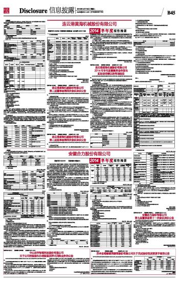 连云港黄海机械股份有限公司2014半年度报告摘要 2014-08-19 来源:证券时报网 作者: