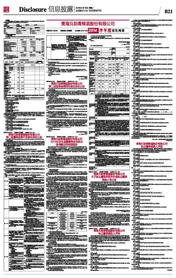 青海互助青稞酒股份有限公司2014半年度报告摘要 2014-08-19 来源:证券时报网 作者: