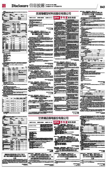 芜湖海螺型材科技股份有限公司2014半年度报告摘要