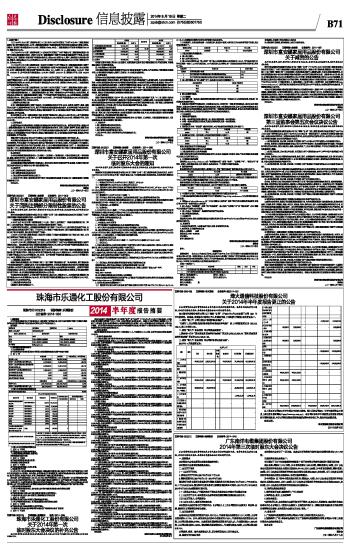 珠海市乐通化工股份有限公司2014半年度报告摘要