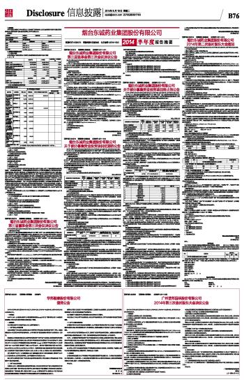 烟台东诚药业集团股份有限公司2014半年度报告摘要