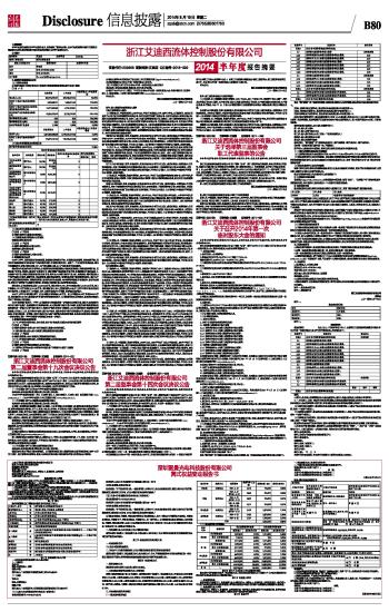 浙江艾迪西流体控制股份有限公司2014半年度报告摘要