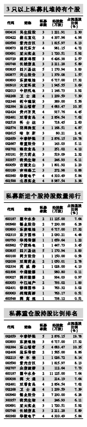 私募现身近三成个股 新进114股 2014-08-21 来源:证券时报网 作者: