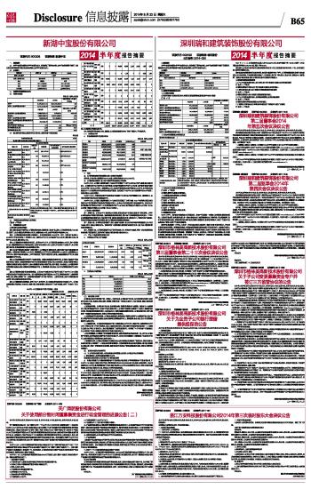 深圳瑞和建筑装饰股份有限公司2014半年度报告摘要