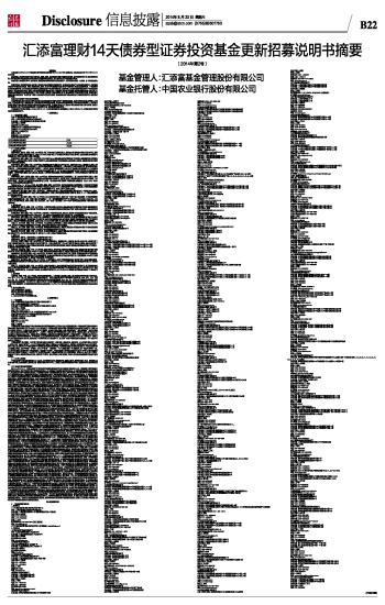 汇添富理财14天债券型证券投资基金更新招募说明书摘要