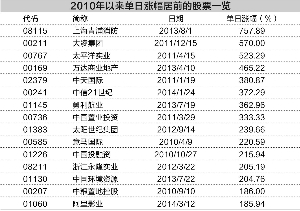证券时报记者 钟恬 如果你在8月22日之前“潜伏”港股瑞东集团(00376.HK),那么恭喜你,22日早盘你的资产升幅就超过5倍——该股开盘不久涨幅一度超过560%。假如你一直持有至收盘,那么你的资产也是翻番的,该股收盘涨116.67%。不过,假如你在早盘高位追入,那么收盘时你的资产损失也可能超过50%。 没有单日涨跌幅限制、T+0操作的港股,有时就会在一天之内上演这样惊心动魄的一幕:8月22日,瑞东集团开盘价为2.86港元,盘中最高升到18港元,随后回落至收盘的5.85港元。 在没有单日涨跌上限的港股市场,单日暴升的股票并不罕见。证券时报数据部统计显示,自2010年以来,单日涨幅超过50%的股票在270只以上。其中,单日涨幅翻番的股票有72只,单日涨幅超过3倍的有8只。上海青浦消防(08115.HK)2013年8月1日涨幅达到757.89%,成近五年的单日涨幅的冠军。大凌集团(00211.HK)及太平洋实业(000767.HK)分别于2011年12月15日、4月15日飙升超过5倍。万达商业地产(00169.HK)2013年4月10日当天涨超400%。而2014年的单日涨幅龙头则是阿里概念股中信21世纪(00241.HK),1月24日复牌当日暴升372.29%。 有的股票在不到一年的时间,甚至上榜好几次。以2014年为例,时尚环球(08309.HK)分别于5月26日、6月25日及7月2日单日暴涨64%、85%和71%,今年以来涨幅达到666.67%。玖源集团(00827.HK)于8月15日狂飙163.64%之后,8月18日再度发力涨51.72%,今年以来涨222.58%。 不过,尽管看起来风光无限好,但并不意味着港股相对A股更有财富效应。这270多只暴涨的股票,绝大多数是长期乏人问津的低价股,成交量极小,长期在低位横盘。而暴涨之后,这些股票也可能暴跌。如上海青浦消防在去年8月1日暴涨7倍之际,股价最高达到2.4港元,但昨日收盘股价不足1港元。如果细究这些股票突然暴涨的原因,主要还是事件性驱动或是概念炒作。 如8月以来连续急涨的玖源集团,因为8月15日发布消息称,向顺风光电的主要股东郑建明配售8亿股新股,相当于扩股后总股本的16.5%,交易将以配售新股和发行可换股债券形式完成,新股每股0.32港元,而可换股债券金额高达8.32亿港元。8月19日,雅视光学(01120.HK)暴升60.80%,则是因为其公告全资子公司雅骏拟将位于深圳龙岗的地皮以人民币18亿元(约合22.67亿港元)出售给佳兆业,出售所得净收益约为人民币6.68亿元~7.92亿元。 今年以来备受瞩目的中信21世纪则是因为沾上阿里概念,公司于1月23日宣布向阿里巴巴集团和云锋基金配发44亿股股份,每股配售价0.3元,较股份1月16日停牌前折让约63.9%,24日该股即飙372.29%。同样,因沾上阿里概念而一飞冲天的还有阿里影业(01060.HK),原名为文化中国传播,因获阿里斥资62.4亿港元入主,3月12日大涨185.94%,8月份更干脆改名“阿里影业”。 值得注意的是,这些暴涨的股票相当一部分业绩并不理想,如阿里影业就预告今年上半年至少亏损9700万港元,玖源集团也于7月份发布盈利预警,称由于尿素及其他化工产品的市场价格下跌,导致公司经营毛利下降,预计上半年录得亏损。 本版导读: