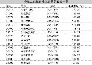 那些单日暴涨超50%的港股 2014-08-26 来源:证券时报网 作者:钟恬