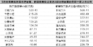 数据显示,9月首发原股东限售股的解禁市值为1303.29亿元,比8月增加703.29亿元;股改、增发等部分的非首发原股东解禁市值为824.56亿元,比8月增加328.81亿元。9月合计限售股解禁市值为2127.85亿元,比8月增加1032.10亿元,增加幅度为94.19%。9月解禁市值环比增加九成多,目前计算为2014年年内最高,也是2013年8月以来最高水平。 9月限售股解禁的上市公司有89家,比8月份多4家;平均每家公司的解禁市值为23.91亿元,比8月增加11.02亿元,增加幅度为85.46%。9月首发原股东限售股解禁的公司有34家,比8月增加5家。股改限售股份、定向增发机构配售等非首发原股东部分涉及的公司有55家,比8月减少1家。其中,股改限售股解禁的公司有3家,定向增发机构配售股解禁的有26家,股权激励限售股解禁的有21家,追加承诺限售股份的有5家。 9月有25家创业板公司的限售股解禁,合计解禁市值为265.44亿元,为年内创业板公司单月解禁市值第二高。其中,10家公司的解禁股数为限售期为36个月的首发原股东持股首次解禁。解禁股数占解禁前流通A股比例最高的前三家公司分别为通光线缆、万福生科、新莱应材,比例分别为280.28%、239.68%、236.79%。解禁市值最高前三家公司分别为尔康制药、隆华节能、巴安水务,市值分别为109.26亿元、28.88亿元、22.45亿元。 9月有31家中小板公司的限售股解禁,合计解禁市值为364.61亿元,为年内中小板公司单月解禁市值第三高。其中,10家公司的解禁股数为限售期为36个月的首发原股东持股首次解禁。解禁股数占解禁前流通A股比例最高的前三家公司分别为长青集团、朗姿股份、露笑科技,比例分别为279.61%、244.37%、215.91%。解禁市值最高前三家公司分别为蒙发利、露笑科技、朗姿股份,市值分别为40.66亿元、32.80亿元、32.22亿元。 9月包括首发原股东和非首发限售股解禁的89家上市公司中,解禁股数占解禁前流通A股比例在100%以上的公司有26家。其中,比例最高前三家公司分别是,长城汽车的比例最高达到560.41%,其次是大有能源的402.49%,荣安地产的372.51%。89家公司中,限售股解禁的市值在10亿元以上的有36家公司。解禁市值最大的前三家分别为长城汽车的529.40亿元、华夏幸福的215.28亿元、美的集团的119.82亿元。 (作者单位:西南证券) 本版导读: