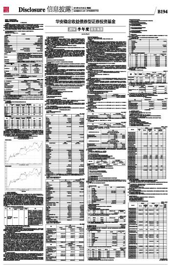 基金管理人:华安基金管理有限公司 基金托管人:中国建设银行股份有限公司 报告送出日期:二〇一四年八月二十九日 §1 重要提示及目录 1.1 重要提示 基金管理人的董事会、董事保证本报告所载资料不存在虚假记载、误导性陈述或重大遗漏,并对其内容的真实性、准确性和完整性承担个别及连带的法律责任。本半年度报告已经三分之二以上独立董事签字同意,并由董事长签发。 基金托管人中国建设银行股份有限公司根据本基金合同规定,于2014年8月27日复核了本报告中的财务指标、净值表现、利润分配情况、财务会计报告、投资组合报告等内容,保证复核内容不存在虚假记载、误导性陈述或者重大遗漏。 基金管理人承诺以诚实信用、勤勉尽责的原则管理和运用基金资产,但不保证基金一定盈利。 基金的过往业绩并不代表其未来表现。投资有风险,投资者在作出投资决策前应仔细阅读本基金的招募说明书及其更新。 本半年度报告摘要摘自半年度报告正文,投资者欲了解详细内容,应阅读半年度报告正文。 本报告中财务资料未经审计。 本报告期自2014年1月1日起至6月30日止。 2 基金简介 2.1 基金基本情况 ■ 2.2 基金产品说明 ■ 2.3 基金管理人和基金托管人 ■ 2.4 信息披露方式 ■ 3 主要财务指标和基金净值表现 3.1 主要会计数据和财务指标 金额单位:人民币元 ■ 注:1、所述基金业绩指标不包括持有人认购或交易基金的各项费用(例如:开放式基金的申购赎回费、红利再投资费、基金转换费等),计入费用后实际收益水平要低于所列数字。 2、本期已实现收益指基金本期利息收入、投资收益、其他收入(不含公允价值变动收益)扣除相关费用后的余额,本期利润为本期已实现收益加上本期公允价值变动收益。 3、期末可供分配利润采用期末资产负债表中未分配利润与未分配利润中已实现部分的孰低数(为期末余额,不是当期发生数)。 3.2 基金净值表现 3.2.1基金份额净值增长率及其与同期业绩比较基准收益率的比较 华安稳定收益债券A ■ 华安稳定收益债券B ■ 注:本基金业绩比较基准为:中国债券总指数。 本基金为债券型基金,投资范围为固定收益类金融工具,包括国内依法公开发行、上市的国债、金融债、可转换债券、可分离债券、债券回购、央行票据、信用等级为投资级的企业(公司)债,以及股票等权益类品种和法律法规或监管机构允许基金投资的其它金融工具。本基金对债券等固定收益类品种的投资比例不低于基金资产的80%;现金或到期日在一年以内的政府债券不低于基金资产净值的5%;股票等权益类品种的投资比例为基金资产的0%-20%。本基金权益类资产投资主要进行首次发行以及增发新股投资,并持有因在一级市场申购所形成的股票以及因可转债转股所形成的股票,不直接从二级市场买入股票、权证等权益类资产。本基金还可以持有股票所派发的权证和可分离债券产生的权证。 3.2.2 自基金合同生效以来基金份额累计净值增长率变动及其与同期业绩比较基准收益率变动的比较 华安稳定收益债券型证券投资基金 份额累计净值增长率与业绩比较基准收益率历史走势对比图 (2008年4月30日至2014年6月30日) 华安稳定收益债券A ■ 华安稳定收益债券B ■ 4 管理人报告 4.1 基金管理人及基金经理情况 4.1.1 基金管理人及其管理基金的经验 华安基金管理有限公司经中国证监会证监基金字[1998] 20号文批准于1998年6月设立,是国内首批基金管理公司之一,注册资本1.5亿元人民币,公司总部设在上海陆家嘴金融贸易区。目前的股东为上海电气(集团)总公司、上海国际信托有限公司、上海工业投资(集团)有限公司、上海锦江国际投资管理有限公司和国泰君安投资管理股份有限公司。 截至2014年6月30日,公司旗下共管理了华安创新混合、华安中国A股增强指数、华安现金富利货币、华安宝利配置混合、华安宏利股票、华安中小盘成长股票、华安策略优选股票、华安核心优选股票、华安稳定收益债券、华安动态灵活混合、华安强化收益债券、华安行业轮动股票、华安上证180ETF、华安上证180ETF联接、华安上证龙头企业ETF、龙头ETF联接、华安升级主题股票、华安稳固收益债券、华安可转换债基金、华安深证300指数基金(LOF)、华安科技动力股票、华安四季红债券、华安香港精选股票、华安大中华升级股票、华安标普石油指数基金(QDII-LOF)、华安月月鑫短期理财债券、华安季季鑫短期理财债券、华安月安鑫短期理财债券、华安七日鑫短期理财债券、华安沪深300指数分级、华安逆向策略、华安日日鑫货币、华安安心收益债券、华安信用增强债券、华安纯债债券、华安保本混合、华安双债添利债券、华安安信消费股票、华安纳斯达克100指数、华安黄金易(ETF)、华安黄金ETF联接、华安沪深300量化指数、华安年年红债券、华安生态优先股票、华安中证细分地产ETF、华安中证细分医药ETF、华安大国新经济股票、华安新活力混合、华安安顺混合等49只开放式基金。管理资产规模达到688.13亿元人民币。 4.1.2 基金经理(或基金经理小组)及基金经理助理的简介 ■ 注:1. 此处的任职日期和离任日期均指公司作出决定之日,即以公告日为准。 2.证券从业的含义遵从行业协会《证券业从业人员资格管理办法》的相关规定。 4.2 管理人对报告期内本基金运作遵规守信情况的说明 本