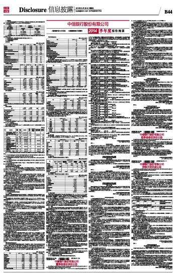 A股证券代码:601998 A股股票简称:中信银行 中信银行股份有限公司2014半年度报告摘要 2014-08-29 来源:证券时报网 作者: