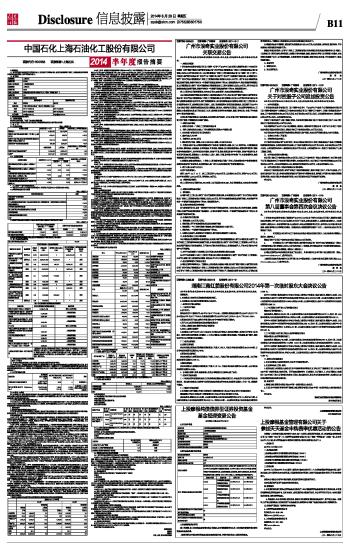 证券代码:600688 证券简称:上海石化 中国石化上海石油化工股份有限公司2014半年度报告摘要 2014-08-29 来源:证券时报网 作者: