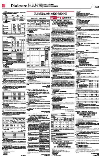证券代码:600391 证券简称:成发科技 四川成发航空科技股份有限公司2014半年度报告摘要 2014-08-29 来源:证券时报网 作者: