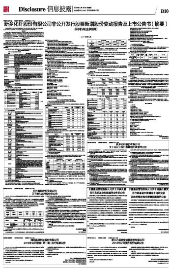 本公司及董事会全体成员保证公告内容的真实、准确和完整,没有虚假记载、误导性陈述或重大遗漏。 新乡化纤股份有限公司(以下简称“公司”、“本公司”、“发行人”或“新乡化纤”)向特定投资者非公开发行股票工作已经完成,现将本次非公开发行相关承诺公告如下: 一、发行人承诺 公司董事会将严格遵守《公司法》、《证券法》、《上市公司证券发行管理办法》等法律、法规和中国证监会的有关规定,承诺自本公司非公开发行股票新增股份上市之日起: (一)真实、准确、完整、公平和及时地公布定期报告、披露所有对投资者有重大影响的信息,并接受中国证监会和深圳证券交易所的监督管理; (二)本公司在知悉可能对股票价格产生误导性影响的任何公共传播媒体出现的消息后,将及时予以公开澄清; (三)本公司董事、监事、高级管理人员将认真听取社会公众的意见和批评,不利用已获得的内幕消息和其他不正当手段直接或间接从事本公司股票的买卖活动。 公司保证向深圳证券交易所提交的文件没有虚假陈述或者重大遗漏,并在提出上市申请期间,未经深圳证券交易所同意,不擅自披露有关信息。 二、发行对象承诺 本次发行共有7名发行对象,其均以现金参与认购,其已与新乡化纤签署《新乡化纤股份有限公司非公开发行股票认购协议书》,承诺其所认购的本次非公开发行的股票,自新增股份上市之日起锁定12个月;同时承诺,其认购款来源合法且符合现行之法律、法规及中国证监会的有关规定。除因本次非公开发行形成的关联关系外,发行对象与本公司无其他的关联关系。 四、保荐机构声明与承诺 (一)保荐机构在证券发行保荐书及上市保荐书中承诺 1、有充分理由确信发行人符合法律法规及中国证监会有关证券发行上市的相关规定; 2、有充分理由确信发行人申请文件和信息披露资料不存在虚假记载、误导性陈述或者重大遗漏; 3、有充分理由确信发行人及其董事在申请文件和信息披露资料中表达意见的依据充分合理; 4、有充分理由确信申请文件和信息披露资料与证券服务机构发表的意见不存在实质性差异; 5、保证所指定的保荐代表人及本保荐机构的相关人员已勤勉尽责,对发行人申请文件和信息披露资料进行了尽职调查、审慎核查; 6、保证发行保荐书、与履行保荐职责有关的其他文件不存在虚假记载、误导性陈述或者重大遗漏; 7、保证对发行人提供的专业服务和出具的专业意见符合法律、行政法规、中国证监会的规定和行业规范; 8、自愿接受中国证监会依照《证券发行上市保荐业务管理办法》采取的监管措施; (二)保荐机构在新增股份变动报告及上市公告书中的声明 本保荐机构已对新乡化纤股份有限公司新增股份变动报告及上市公告书进行了核查,确认不存在虚假记载、误导性陈述或重大遗漏,并对其真实性、准确性和完整性承担相应的法律责任。 五、发行人律师声明 公司本次非公开发行股票律师河南亚太人律师事务所声明: 本所及签字的律师已阅读新乡化纤股份有限公司新增股份变动报告及上市公告书,确认与本所出具的法律意见不存在矛盾。本所及签字的律师对发行人在本新增股份变动报告及上市公告书中引用的法律意见的内容无异议,确认本新增股份变动报告及上市公告书不致因所引用内容出现虚假记载、误导性陈述或重大遗漏,并对其真实性、准确性和完整性承担相应的法律责任。 六、审计机构声明 公司本次非公开发行股票审计机构大信会计师事务所(特殊普通合伙)声明: 本所及签字注册会计师已阅读新乡化纤股份有限公司新增股份变动报告及上市公告书,确认与本所出具的报告不存在矛盾。本所及签字注册会计师对发行人在本新增股份变动报告及上市公告书中引用的财务报告的内容无异议,确认本新增股份变动报告及上市公告书不致因所引用内容而出现虚假记载、误导性陈述或重大遗漏,并对其真实性、准确性和完整性承担相应的法律责任。 七、验资机构声明 公司本次非公开发行股票验资机构大信会计师事务所(特殊普通合伙)声明: 本所及签字注册会计师已阅读新乡化纤股份有限公司新增股份变动报告及上市公告书,确认本新增股份变动报告及上市公告书与本机构出具的验资报告不存在矛盾。本机构及签字的注册会计师对发行人在本新增股份变动报告及上市公告书中引用的验资报告的内容无异议,确认本新增股份变动报告及上市公告书不致因所引用内容出现虚假记载、误导性陈述或重大遗漏,并对其真实性、准确性和完整性承担相应的法律责任。 特此公告 新乡化纤股份有限公司董事会 二〇一四年八月二十八日 本版导读: