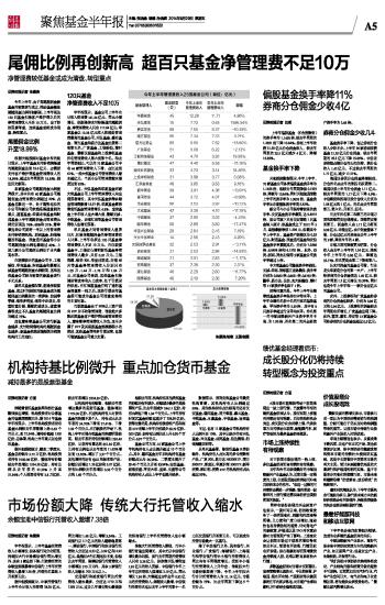 尾佣比例再创新高 超百只基金净管理费不足10万