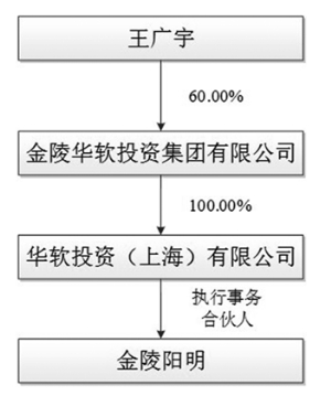 5、金陵恒毅及其有关人员最近五年受处罚等情况 金陵恒毅及其高级管理人员最近五年未受过行政处罚(与证券市场明显无关的除外)、刑事处罚,也未涉及与经济纠纷有关的重大民事诉讼或者仲裁。 6、同业竞争情况 截至目前,发行人与金陵恒毅之间不存在同业竞争的情形,本次发行也不会产生新的同业竞争情形。 7、本次发行完成后,金陵恒毅及其控股股东与本公司之间的关联交易情况 为确保投资者的利益,公司已在《公司章程》、《关联交易管理制度》等制度中对关联交易进行了规范。本次发行前,金陵恒毅及其执行事务合伙人、实际控制人与公司不存在关联交易。除金陵恒毅参与认购公司本次非公开发行股票外,本次发行将不会导致金陵恒毅及其执行事务合伙人、实际控制人与本公司之间产生新的关联交易。 8、本次发行预案披露前24个月内,金陵恒毅及其控股股东与本公司之间的重大交易情况 本次发行前,公司与金陵恒毅及其执行事务合伙人、实际控制人不存在重大交易。 (三)金陵阳明 1、基本情况 名称:北京金陵华软阳明投资合伙企业(有限合伙) 住所:北京市朝阳区姚家园路105号3号楼15层1502房间 成立日期:2014年8月21日 执行事务合伙人:华软投资(上海)有限公司 认缴出资总额:50,400万元 企业类型:有限合伙企业 经营范围:项目投资;投资管理;资产管理。(依法须经批准的项目,经相关部门批准后方可开展经营活动) 2、股权及控制关系 金陵阳明的股权结构为: