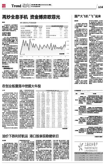 长江证券 航运市场行情低位徘徊,干散货市场止跌回暖。2014年上半年,航运业整体回暖缓慢,但是受到油价下跌和继续推行经济航速的带动,成本普遍下降并带动行业毛利率回升。散货市场运价呈现前高后低的走势;集运市场运价低位波动,仍受困于供需矛盾;油运市场运价年初冲高后迅速回落,波动剧烈。 整体行业收入同比上升2.68%,在交通运输各子行业中排名倒数第二,营业利润和净利润同比分别上升158.61%和上升66.79%,主要原因是去年行业运价处于历史绝对底部,同时今年油价下跌和经济航速的充分利用。 港口增速依旧稳健。港口板块2014年上半年主业走势维持稳健态势,收入同比增长10.37%,交通运输子行业中排名第三,营业利润和净利润同比分别上升5.45%和7.04%,反映出行业盈利表现的稳定性以及成本增速略快于收入增速的两大特点。 航运细分市场中,油运盈利改善明显,散货集运亦有好转。1.收入:散货和油运运价高开低走,集运增长依赖大型化扩张。干散货市场和油运市场都有不同程度回暖,但整体表现为前高后低,BDI指数持续回落至底部,油运指数波动剧烈;而集运市场运价低位波动。2.盈利:油运实现盈利,集运散货以减亏为主。集运企业减亏主要依靠油价下跌,油运板块回升至盈亏平衡点以上,散运子板块减亏来自运价回升和严控成本。3.现金流与财务压力:现金流普遍由负转正,但资产负债率上升。 港口公司量升带动利润增加,现金流压力趋涨但仍可控。1.收入:吞吐量平稳增长拉动营收,中小港口增速居前。2014年上半年,全国港口货物吞吐量和集装箱吞吐量同比分别增长5.2%和5.7%,增速略有下降。港口主要上市公司的收入增速基本与吞吐量增速保持一致。2.盈利:量升拉动净利增加,但成本压力不减。港口企业在经历了一轮成本压力之后,已经逐步开始适应并调整成本控制策略,收入的增量能较为顺畅地体现到利润上,这一点比2013年的情况有所好转。3.现金流与财务压力:现金流压力来自应收账款,财务压力基本持平。尽管港口公司的收入表现相对来说还较为稳健,17家公司中12家的收入为正增长,但由于上游航运企业的多年不景气带来的传导作用,应收账款增速明显快于收入增速,有8家公司的应收账款增速超过了20%,说明存在一定的回款压力。不过,考虑到港口企业存量现金流相对充裕,期末现金同比仍以上涨为主。 本版导读: