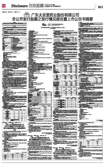 广东太安堂药业股份有限公司非公开发行股票之发行情况报告暨上市公告书摘要