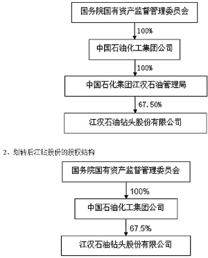 证券代码:000852 证券简称:江钻股份 公告编号:2014-056 江汉石油钻头股份有限公司 关于公司控股股东签署国有产权 划转协议及权益变动的提示性公告 本公司及董事会全体成员保证信息披露的内容真实、准确、完整,没有虚假记载、误导性陈述或重大遗漏。 本公司接到控股股东中国石化集团江汉石油管理局(以下简称“江汉石油管理局”)与中国石油化工集团公司(以下简称“石化集团”)于2014年9月12日签署的《中国石油化工集团公司与中国石化集团江汉石油管理局关于江汉石油钻头股份有限公司的国有产权划转协议》(以下简称《划转协议》)。 江汉石油管理局将其持有的江钻股份67.50%股权无偿划转给石化集团(以下简称“本次划转”)。本次划转完成后,江汉石油管理局将不再持有江钻股份股权,石化集团通过无偿划转的方式取得江钻股份67.50%的股权,成为江钻股份的控股股东。交易前后石化集团控制的江钻股份股权比例并未发生变化。本次权益变动的具体内容详见公司指定信息披露媒体巨潮资讯网(www.cninfo.com.cn)上披露的《江汉石油钻头股份有限公司简式权益变动报告书》。 一、协议签署情况 《划转协议》主要内容: 1、股权划出方:中国石化集团江汉石油管理局 2、股权划入方:中国石油化工集团公司 3、划转的国有产权的数量:270,270,000股,占江钻股份总股本的67.50% 4、协议签订日期:2014 年9月12日 5、协议生效条件:本协议须由双方法定代表人或其授权代表签字、加盖法人公章,并经国务院国有资产监督管理委员会(以下简称“国务院国资委”)核准后生效。根据国务院国资委、中国证券监督管理委员会(以下简称“中国证监会”)《国有股东转让所持上市公司股份管理暂行办法》的规定,本次划转尚需经过国务院国资委核准,并经中国证监会豁免石化集团的要约收购义务及对其提交的相关收购报告书审核无异议后,方能实施。 二、划入方情况 公司名称:中国石油化工集团公司 公司类型:全民所有制企业 注册资本:23162058.5 万元人民币 住所:北京市朝阳区朝阳门北大街22号 法定代表人:傅成玉 营业执照注册号:100000000001244 税务登记证号码:11010510169286X 成立时间:1983年09月14日 经营范围:组织所属企业石油、天然气的勘探、开采、储运(含管道运输)、销售和综合利用;组织所属企业石油炼制;组织所属企业成品油的批发和零售;组织所属企业石油化工及其他化工产品的生产、销售、储存、运输经营活动;实业投资及投资管理;石油石化工程的勘探设计、施工、建筑安装;石油石化设备检修维修;机电设备制造;技术及信息、替代能源产品的研究、开发、应用、咨询服务;进出口业务。(依法须经批准的项目,经相关部门批准后方可开展经营活动) 石化集团为全民所有制企业,是国务院国资委代表国务院履行出资人职责的企业。 石化集团股权结构图如下: ■ 三、本次划转前后江钻股份的股权结构 本次划转前,石化集团不直接持有江钻股份的股份。根据《划转协议》,石化集团将通过国有资产无偿划转方式获得江钻股份67.50%的股权。 1、划转前江钻股份的股权结构 ■ 四、其它说明 本次划转事项合法合规,不存在江汉石油管理局尚在履行的承诺事项因本次划转而违反规定的情形,也不违反《上市公司收购管理办法》的相关规定。 本次划转事项系由石化集团、江汉石油管理局决策的独立事项,不以其他事项或条件为前提。 根据《国有股东转让所持上市公司股份管理暂行办法》规定,本次划转事项尚需报经国务院国资委审批;同时根据《上市公司收购管理办法》规定,本次划转事项尚需中国证监会就收购报告书审核无异议以及豁免石化集团要约收购义务。鉴于上述有权部门审批的前置要求,本次划转事项能否顺利完成尚具有一定的不确定性,敬请广大投资者注意投资风险。 本公司将继续认真履行上市公司信息披露义务,根据本次划转事项进展情况及时、准确、完整地披露有关信息。 五、备查文件 1、《中国石油化工集团公司与中国石化集团江汉石油管理局关于江汉石油钻头股份有限公司的国有产权划转协议》; 2、《江汉石油钻头股份有限公司简式权益变动报告书》; 3、《江汉石油钻头股份有限公司收购报告书(摘要)》。 特此公告 江汉石油钻头股份有限公司董事会 2014 年9月16日