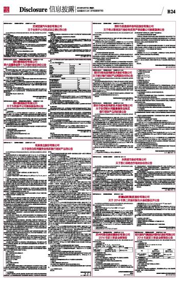 本公司及董事会全体成员保证信息披露的内容真实、准确、完整,没有虚假记载、误导性陈述或重大遗漏。 一、本期业绩预计情况 1.业绩预告期间:2014年1月1日——2014年9月30日 2.预计的业绩: □亏损 □扭亏为盈 □同向上升 ■同向下降 ■ 二、业绩预告预审计情况 本次业绩预告未经过注册会计师审计。 三、业绩变动原因说明 公司2014年前三季度业绩与上年同期相比同向下降,业绩变动主要原因是: 1、募集资金存款减少导致利息收入同比下降; 2、纳入合并范围的法国子公司还处于整合期,经营略有亏损。 四、其他相关说明 1、本次业绩预告由公司财务部测算,未经审计机构审计; 2、公司2014年前三季度的非经常性损益金额约400万元,影响净利润约340万元; 3、2014年前三季度业绩具体数据将在本公司2014年前三季度报告中详细披露,敬请广大投资者注意投资风险。 特此公告 苏州科斯伍德油墨股份有限公司 董事会 2014年10月10日