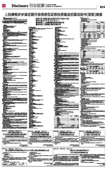 上投摩根岁岁盈定期开放债券型证券投资基金招募说明书(更新)摘要 2014-10-11 来源:证券时报网 作者: