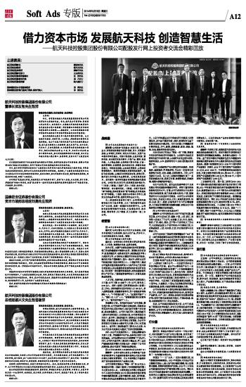 借力资本市场 发展航天科技 创造智慧生活