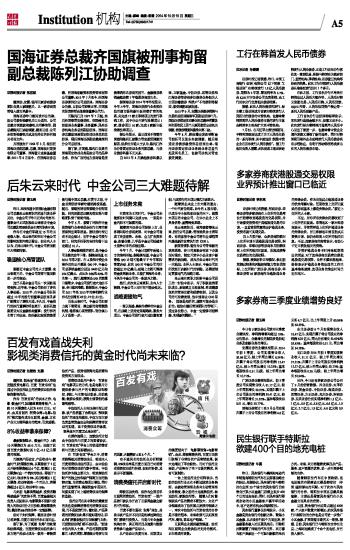 国海证券总裁齐国旗被刑事拘留副总裁陈列江协助调查