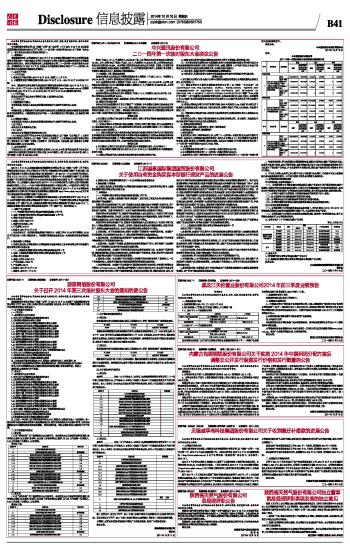 证券代码:600010 股票简称:包钢股份 编号:(临)2014-041 内蒙古包钢钢联股份有限公司关于实施2014年中期利润分配方案后 调整非公开发行股票发行价格和发行数量的公告 本公司董事会及全体董事保证本公告内容不存在任何虚假记载、误导性陈述或者重大遗漏,并对其内容的真实性、准确性和完整性承担个别及连带责任。 重要提示: 1、公司本次非公开发行A股股票的发行价格由3.60元/股调整为1.80元/股。 2、公司本次非公开发行A股股票的发行数量上限由不超过82.78亿股调整为不超过165.56亿股。 根据公司2014年第二次临时股东大会审议通过的《关于公司中期利润分配以及资本公积金转增股本的提案》,公司2014年中期利润分配以及资本公积金转增股本的方案为:以2014年6月30日公司总股本8,002,591,027股为基数,以未分配利润向全体股东每10股送0.5股,并向全体股东每10股派发现金红利0.125元(含税);以资本公积金向全体股东每10股转增9.5股。 按照公司于2014年9月23日公告的《2014年度中期利润分配实施公告》,2014年9月26日为本次利润分配的股权登记日,2014年9月29日为除权除息日、现金红利发放日,2014年9月30日为新增股份上市流通日。目前公司2014年中期利润分配方案已实施完毕。 公司召开的第四届董事会第六次会议审议通过了《关于公司非公开发行股票方案(修订稿)的议案》等议案,根据该议案,本次非公开发行A股的定价基准日为公司第四届董事会第四次会议决议公告日(2013年12月31日)。本次非公开发行A股的发行价格为3.61元/股,即不低于定价基准日前20个交易日公司A股股票交易均价的90%(定价基准日前20个交易日A股股票交易均价=定价基准日前20个交易日A股股票交易总额/定价基准日前20个交易日A股股票交易总量)。定价基准日至发行日期间,如发生除权、除息事项,本次发行价格将相应调整。 本次非公开发行股票的数量根据以下方式确定:本次非公开发行股票的总股数=拟募集资金总额/本次非公开发行的发行价格。 根据本次拟募集资金总额,本次非公开发行的股票数量为不超过82.55亿股。 定价基准日至发行日期间,如发生除权、除息事项,本次发行数量将相应调整。 公司2013年度利润分配实施完毕后,公司已将本次非公开发行股票的发行价格调整为3.60元/股,发行数量调整为不超过82.78亿股。上述事项详见公司披露的《关于实施2013年度利润分配方案后调整非公开发行股票发行价格和发行数量的公告》(编号:(临)2014-035)。 公司根据2014年中期利润分配方案再次将公司本次非公开发行股票的发行价格和发行数量调整为:发行价格为1.80元/股,发行数量为不超过165.56亿股。 除以上调整外,本次发行的其他事项均无变化。若在定价基准日至发行日期间再次发生除权除息事宜,董事会将按有关规定再次调整发行价格与发行数量上限。 特此公告。 内蒙古包钢钢联股份有限公司董事会 2014年10月16日 证券代码: 000581 200581 证券简称:威孚高科 苏威孚B 公告编号: 2014-028 无锡威孚高科技集团股份有限公司关于收到搬迁补偿款的进展公告 本公司及董事会全体成员保证信息披露的内容真实、准确和完整,没有虚假记载、误导性陈述或者重大遗漏。 一、公司搬迁情况介绍 根据无锡市城市总体规划,无锡威孚高科技集团股份有限公司(以下简称"公司"、 "威孚公司")于 2010年8月启动退城进园工作。(具体内容详见2010年8月11日巨潮资讯网站(http://www.cninfo.com.cn)《关于公司实施"退城进园"的公告》(公告编号:2010-23)。 2013年9月公司与无锡市土地储备中心签署了《无锡市国有土地使用权收购合同》, 公司将获得50,381.16万元的搬迁补偿款。(具体内容详见2013年9月28日巨潮资讯网站(http://www.cninfo.com.cn)《关于签署无锡市国有土地使用权收购合同的公告》(公告编号:2013-022))。 鉴于2014年4月工信部发文明确了柴油车国四排放法规将于2015年1月1日在全国范围内全面实施,进入二季度后国IV产品市场需求快速增长,考虑到公司原计划今年7月底启动生产性机器设备搬迁工作会对生产产生影响,故公司向无锡市人民政府提交了《关于申请调整威孚公司搬迁时间节点的报告》,经无锡市人民政府协调、与各相关方协商后,同意对公司原搬迁的时间节点进行调整,涉及搬迁补偿款的给付时间节点作同步调整,具体时间节点调整如下: 原启动生产性机器设备搬迁工作由2014年7月底前,现调整为2014年9月底前; 原完成生产性机器设备搬迁工作由2014年11月底前,现调整为2015年4月底前; 原完成所有可搬迁设备搬迁完毕、房屋腾空由2014年12月底前,现调整为2015年6月底。 二、收到搬迁补偿款的情况 公司于2014年9月底前启动了生产性机器设备搬迁工作,2014年10月13日收到搬迁补偿款14,523万元,截止本公告日,公司累计收到搬迁补偿款15,313万元。公司将按照财政部《企业会计准则解释第3号》和《企业会计准则第16号-政府补助》的规定,对搬迁补偿款进行相应的会计处理,对公司2014年度利润不产生影响,敬请广大投资者注意投资风险。公司将在收到剩余搬迁补偿款后及时履行信息披露义务。 特此公告。 无锡威孚高科技集团股份有限公司董事会 二0一四年十月十六日 证券代码:000711 证券简称:天伦置业 公告编号:2014-093 黑龙江天伦置业股份有限公司2014年前三季度业绩预告 特别提示 本公司及董事会全体成员保证信息披露的内容真
