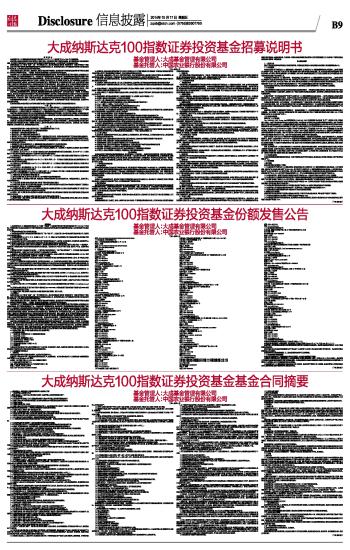 大成纳斯达克100指数证券投资基金份额发售公告 2014-10-17 来源:证券时报网 作者: