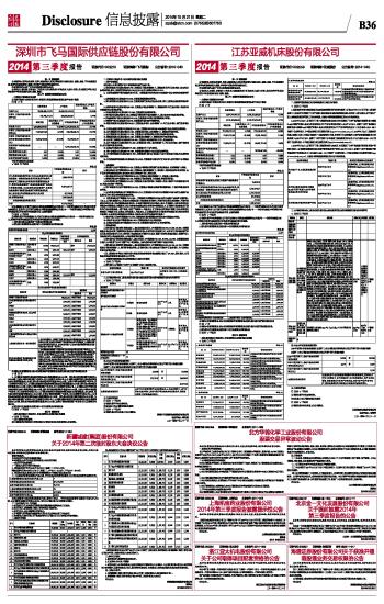 五、证券投资情况 □ 适用 √ 不适用 公司报告期不存在证券投资。 持有其他上市公司股权情况的说明 □ 适用 √ 不适用 公司报告期未持有其他上市公司股权。 江苏亚威机床股份有限公司 法定代表人:吉素琴 二〇一四年十月二十一日