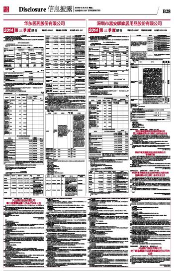 证券代码:000963 证券简称:华东医药 公告编号:2014-047 TitlePh 华东医药股份有限公司2014第三季度报告 2014-10-21 来源:证券时报网 作者: