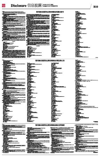 (上接B9版) 个人投资者申请开立资金账户时应提交下列材料: (1)本人有效身份证件原件及复印件; (2)填妥的《资金账户开户申请表》; (3)填妥的《资金存款凭条》并存入相应资金。 机构投资者申请开立资金账户时应提交下列材料: (1)资金账户开户申请表(加盖机构公章和法定代表人签章); (2)工商行政管理机关颁发的有效法人营业执照(副本)或民政部门或其他主管部门颁发的注册登记证书原件及上述文件加盖公章的复印件; (3)法定代表人授权委托书(加盖机构公章和法定代表人签章); (4)经办人有效身份证件原件及复印件。 3、办理开户(或账户注册)须提交的材料: 个人投资者须提供以下资料: (1)上海A股股东代码卡或基金账户代码卡(办理账户注册时需要); (2)填妥的《开放式基金账户开户申请表》; (3)本人有效身份证件原件及复印件; (4)资金账户卡。 机构投资者应指定经办人到网点并提交以下材料: (1)上海A股股东代码卡或基金账户代码卡(办理账户注册时需要); (2)填妥的开立开放式基金账户申请表(加盖机构公章和法定代表人签章); (3)工商行政管理机关颁发的有效法人营业执照(副本)或民政部门或其他主管部门颁发的注册登记证书原件及上述文件加盖公章的复印件; (4)法定代表人证明书(加盖机构公章); (5)法定代表人有效身份证件原件及复印件; (6)法定代表人授权委托书(加盖机构公章和法定代表人签章); (7)经办人有效身份证件原件及复印件; (8)资金账户卡。 4、提出认购申请 个人投资者提出认购申请须提交以下资料: (1)填妥的《开放式基金认购申请表》; (2)本人有效身份证件原件; (3)资金账户卡。 机构投资者在代销券商代销网点提出认购申请须提交以下资料: (1)填妥的开放式基金认购申请表(加盖机构公章和法定代表人签章); (2)工商行政管理机关颁发的有效法人营业执照(副本)或民政部门或其他主管部门颁发的注册登记证书原件及上述文件加盖公章的复印件; (3)经办人有效身份证件原件及复印件; (4)法定代表人授权委托书(加盖机构公章和法定代表人签章); (5)资金账户卡。 5、注意事项 (1)投资者在代销券商代销网点开立资金账户和开放式基金账户的具体手续可能有所区别,请投资者仔细阅读代销网点的业务公告或咨询代销网点的相关工作人员; (2)投资者在代销券商代销网点认购本基金的方式包括电话、互联网、磁卡自助、热自助等,具体可以采用的方式以代销网点的规定为准; (3)投资者在代销券商代销网点查询认购确认情况的方式可能有所区别,以代销网点的规定为准; (4)个人投资者若委托他人办理开户和认购事宜,须按照代销券商代销网点的要求提供授权委托书等证明文件; (5)其他有关在代销券商代销网点认购本基金的程序,若有其它方面的要求,以代销券商代销网点的说明为准。 四、场内开户与认购 (一)场内认购使用账户说明 投资者通过场内认购本基金应使用上海A股账户或基金账户。 1、已有上海A股账户或基金账户的投资者不必再办理开户手续。 2、尚无上海A股账户或基金账户的投资者,需在认购前到中国证券登记结算上海分公司的开户代理机构办理上海A股账户或基金账户的开户手续。有关开设上海A股账户和基金账户的具体程序和办法,请到各开户网点详细阅读有关规定。 (二)认购流程 1、受理认购的时间:2014年10月23日至2014年11月19日(周六、周日和节假日不受理)9:30-11:30 和13:00-15:00。 2、开立资金账户:在具有基金代销业务资格的券商营业部开立资金账户。 3、办理认购: (1)投资者根据自己的计划认购量,在认购前向自己的资金账户中存入足够的资金。 (2)投资者可通过填写认购委托单、电话委托或磁卡委托等方式在其开立资金账户的券商营业部申报认购委托,可多次申报,申报一经确认,认购资金即被冻结。 五、清算与交割 (一)基金募集期间募集的资金全部被冻结在本基金募集专户,在基金募集行为结束前,任何人不得动用。投资者认购款项在基金合同生效前产生的银行存款利息归投资者所有,在本基金认购结束后,折算为基金份额计入投资者的账户,具体份额以注册登记人的记录为准。 (二)本基金权益登记由注册登记人在基金募集结束后完成。 六、基金的验资与基金合同的生效 基金募集期限届满,募集的基金份额总额符合《证券投资基金法》第四十四条的规定,并具备下列条件的,基金管理人应当按照规定办理验资和基金备案手续: (一)基金募集份额总额不少于两亿份,基金募集金额不少于两亿元人民币。 (二)基金份额持有人的人数不少于200人。 基金管理人应当自募集期限届满之日起十日内聘请法定验资机构验资,自收到验资报告之日起十日内,向中国证监会提交验资报告,办理基金备案手续。中国证监会自收到基金管理人验资报告和基金备案材料之日起三个工作日内予以书面确认;自中国证监会书面确认之日起,基金备案手续办理完毕,基金合同生效。 基金管理人应当在收到中国证监会确认文件的次日予以公告。 基金募集期限届满,募集的基金份额总额不符合《证券投资基金法》第四十四条的规定,或不具备以上募集份额总额、募集金额、份额持有人条件的,基金管理人应当承担下列责任: (一)以其固有财产承担因募集行为而产生的债务和费用; (二)在基金募集期限届满后三十日内返还投资人已缴纳的款项,并加计银行同