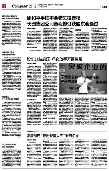周和平手续不全错失投票权 长园集团公司章程修订获股东会通过