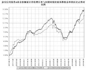 基金管理人:嘉实基金管理有限公司 基金托管人:中国银行股份有限公司 报告送出日期:2014年10月24日 §1 重要提示 基金管理人的董事会及董事保证本报告所载资料不存在虚假记载、误导性陈述或重大遗漏,并对其内容的真实性、准确性和完整性承担个别及连带责任。 基金托管人中国银行股份有限公司根据本基金合同规定,于2014年10月21日复核了本报告中的财务指标、净值表现和投资组合报告等内容,保证复核内容不存在虚假记载、误导性陈述或者重大遗漏。 基金管理人承诺以诚实信用、勤勉尽责的原则管理和运用基金资产,但不保证基金一定盈利。 基金的过往业绩并不代表其未来表现。投资有风险,投资者在作出投资决策前应仔细阅读本基金的招募说明书。 本报告期中的财务资料未经审计。 本报告期自2014年7月1日起至2014年9月30日止。 §2 基金产品概况 ■ §3 主要财务指标和基金净值表现 3.1 主要财务指标 单位:人民币元 ■ 注:(1)本期已实现收益指基金本期利息收入、投资收益、其他收入(不含公允价值变动收益)扣除相关费用后的余额,本期利润为本期已实现收益加上本期公允价值变动收益;(2)嘉实信用债券A收取认(申)购费,嘉实信用债券C不收取认(申)购费但计提销售服务费。(3)所述基金业绩指标不包括持有人认购或交易基金的各项费用,计入费用后实际收益水平要低于所列数字。 3.2 基金净值表现 3.2.1 本报告期基金份额净值增长率及其与同期业绩比较基准收益率的比较 嘉实信用债券A ■ 嘉实信用债券C ■ 3.2.2 自基金合同生效以来基金累计净值增长率变动及其与同期业绩比较基准收益率变动的比较 ■ 图1:嘉实信用债券A基金份额累计净值增长率与同期业绩比较基准收益率的历史走势对比图 (2011年9月14日至2014年9月30日) ■ 图2:嘉实信用债券C基金份额累计净值增长率与同期业绩比较基准收益率的历史走势对比图 (2011年9月14日至2014年9月30日) 注1:按基金合同和招募说明书的约定,本基金自基金合同生效日起6个月内为建仓期,建仓期结束时本基金的各项投资比例符合基金合同(十四(二)投资范围和(七)投资禁止行为与限制2.基金投资组合比例限制)的有关约定。 注2:2014年7月16日,本基金管理人发布《关于嘉实信用债券基金经理变更的公告》, 万晓西先生不再担任本基金基金经理。 §4 管理人报告 4.1 基金经理(或基金经理小组)简介 ■ 注:(1)基金经理任职日期、离任日期是指公司作出决定后公告之日;(2)证券从业的含义遵从行业协会《证券业从业人员资格管理办法》的相关规定。 4.2 管理人对报告期内本基金运作遵规守信情况的说明 报告期内,本基金管理人严格遵循了《证券法》、《证券投资基金法》及其各项配套法规、《嘉实信用债券型证券投资基金基金合同》和其他相关法律法规的规定,本着诚实信用、勤勉尽责的原则管理和运用基金资产,在严格控制风险的基础上,为基金份额持有人谋求最大利益。本基金运作管理符合有关法律法规和基金合同的规定和约定,无损害基金份额持有人利益的行为。 4.3 公平交易专项说明 4.3.1 公平交易制度的执行情况 报告期内,基金管理人严格执行证监会《证券投资基金管理公司公平交易制度指导意见》和公司内部公平交易制度,各投资组合按投资管理制度和流程独立决策,并在获得投资信息、投资建议和实施投资决策方面享有公平的机会;通过完善交易范围内各类交易的公平交易执行细则、严格的流程控制、持续的技术改进,确保公平交易原则的实现;通过IT系统和人工监控等方式进行日常监控,公平对待旗下管理的所有投资组合。 4.3.2 异常交易行为的专项说明 报告期内,公司旗下所有投资组合参与交易所公开竞价交易中,同日反向交易成交较少的单边交易量超过该证券当日成交量的5%的,合计2次,均为旗下组合被动跟踪标的指数需要,与其他组合发生反向交易,不存在利益输送行为。 4.4 报告期内基金的投资策略和业绩表现说明 4.4.1 报告期内基金投资策略和运作分析 报告期内,经济下滑速度超出市场预期,新一届政府在改革和增长之间做出了决断性的选择,顺应了经济发展规律,增强了市场对于中国长期转型的信心。短期经济下行压力加大,为了给改革创造较好的资金环境,货币政策持续宽松,降低全社会融资成本这项政治任务构成央行中期内的政策目标。 债券市场回顾:银行间市场流动性持续宽松,工业增加值和投资数据显著低于预期,机构对于货币政策进一步放松预期强烈,始于6月中以来的利率债收益率调整在7月末以来逐步得以扭转,并在8月中经济数据恶化以及央行公开市场操作引导下,再度出现一波下行行情;而信用债则在刚性配置需求下,走出了曲线收益率下行的持续行情,城投、企业债的信用利差创出历史新低。 季度初期,保持中低久期的中高等级信用债配置,适度降低杠杆,其后在7月中旬到8月末参与了一波长端利率债的波段行情,但出于对货币政策全面放松的谨慎心态,实现收益的时间点过早,错过了9月中旬这波下行。基于对经济继续下滑,融资性需求面临大幅滑坡的预期,投资性资产收益率下行可能会倒逼理财类产品收益率的下调,因此,9月下旬组合再度增加部分中端金融债配置,同时维持对信用债的中高等级品种配置。 4.4.2 报告期内基金的业绩表现 截至报告期末嘉实信用债券A基金份额净值