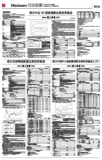 南方中国中小盘股票指数证券投资基金(LOF)2014第三季度报告2014年9月30日 2014-10-24 来源:证券时报网 作者: