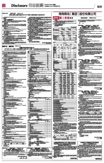 海南椰岛(集团)股份有限公司2014第三季度报告