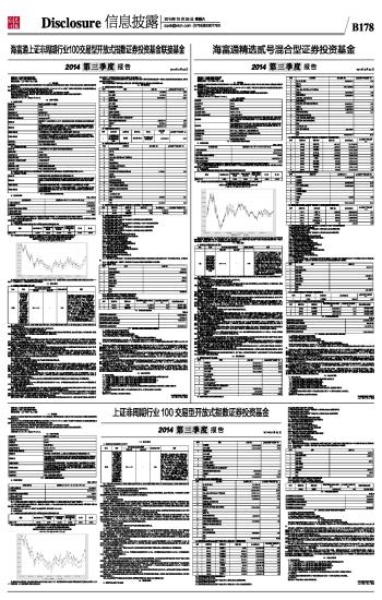 基金管理人:海富通基金管理有限公司 基金托管人:中国工商银行股份有限公司 报告送出日期: 二〇一四年十月二十五日 §1 重要提示 基金管理人的董事会及董事保证本报告所载资料不存在虚假记载、误导性陈述或重大遗漏,并对其内容的真实性、准确性和完整性承担个别及连带责任。 基金托管人中国工商银行股份有限公司根据本基金合同规定,于2014年10月24日复核了本报告中的财务指标、净值表现和投资组合报告等内容,保证复核内容不存在虚假记载、误导性陈述或者重大遗漏。 基金管理人承诺以诚实信用、勤勉尽责的原则管理和运用基金资产,但不保证基金一定盈利。 基金的过往业绩并不代表其未来表现。投资有风险,投资者在作出投资决策前应仔细阅读本基金的招募说明书。 本报告中财务资料未经审计。 本报告期自2014年7月1日起至9月30日止。 §2 基金产品概况 ■ §3 主要财务指标和基金净值表现 3.1 主要财务指标 单位:人民币元 ■ 注:(1)所述基金业绩指标不包括持有人认购或交易基金的各项费用,计入费用后实际收益水平要低于所列数字。 (2)本期已实现收益指基金本期利息收入、投资收益、其他收入(不含公允价值变动收益)扣除相关费用后的余额,本期利润为本期已实现收益加上本期公允价值变动收益。 (3)本基金已于2011年5月18日进行了基金份额折算,折算比例为0.42126887。 3.2 基金净值表现 3.2.1 本报告期基金份额净值增长率及其与同期业绩比较基准收益率的比较 ■ 3.2.2 自基金合同生效以来基金份额累计净值增长率变动及其与同期业绩比较基准收益率变动的比较 上证非周期行业100交易型开放式指数证券投资基金 份额累计净值增长率与业绩比较基准收益率历史走势对比图 (2011年4月22日至2014年9月30日) ■ 注:按照本基金合同规定,本基金建仓期为基金合同生效之日起三个月。截至报告期末本基金的各项投资比例已达到基金合同第十三章(二)投资范围、(六)投资限制中规定的各项比例。 §4 管理人报告 4.1 基金经理(或基金经理小组)简介 ■ 注:1、对基金的首任基金经理,其任职日期指基金合同生效日,离任日期指公司做出决定之日;非首任基金经理,其任职日期和离任日期均指公司做出决定之日。 2、证券从业年限的计算标准为:自参加证券行业的相关工作开始计算。 4.2 管理人对报告期内本基金运作遵规守信情况的说明 本报告期内,本基金管理人认真遵循《中华人民共和国证券投资基金法》及其他有关法律法规、基金合同的规定,本着诚实信用、勤勉尽职的原则管理和运用基金资产,没有发生损害基金份额持有人利益的行为。 4.3 公平交易专项说明 4.3.1 公平交易制度的执行情况 报告期内,公司根据证监会2011年发布的《证券投资基金管理公司公平交易制度指导意见》的具体要求,持续完善了公司投资交易业务流程和公平交易制度。制度和流程覆盖了境内上市股票、债券的一级市场申购、二级市场交易等投资管理活动,涵盖了授权、研究分析、投资决策、交易执行、业绩评估等投资管理活动相关的各个环节。同时,公司投资交易业务组织架构保证了各投资组合投资决策相对独立,确保其在获得投资信息、投资建议和实施投资决策方面享有公平的机会。 公司建立了严格的投资交易行为监控制度,公司投资交易行为监控体系由交易室、投资部、监察稽核部和风险管理部组成,各部门各司其职,对投资交易行为进行事前、事中和事后的全程监控,保证公平交易制度的执行和实现。 报告期内,公司对本基金与公司旗下所有其他投资组合之间的整体收益率差异、分投资类别(股票、债券)的收益率差异进行了分析,并采集了连续四个季度期间内、不同时间窗下(如日内、3日内、5日内)同向交易的样本,对其进行了95%置信区间,假设溢价率为0的T分布检验,检验结果表明,在T日、T+3日和T+5日不同循环期内,不管是买入或是卖出,公司各组合间买卖价差不显著,表明报告期内公司对旗下各基金进行了公平对待,不存在各投资组合之间进行利益输送的行为。 4.3.2 异常交易行为的专项说明 本报告期内,未发现本基金进行可能导致不公平交易和利益输送的异常交易。 4.4 报告期内基金的投资策略和运作分析 2014年三季度,A股市场在多舛的宏观经济数据、微刺激和改革政策、四中全会及沪港通预期的交错影响下震荡上行。经历了数周的波动之后,A股市场在地产政策放松、经济数据超预期好转等正面因素带动下,在7月下旬迎来了由大盘蓝筹估值修复推动的强劲反弹。8月,低于预期的宏观数据打击了大盘指数的表现,但市场在沪港通、国企改革和各行业政策利好不断推出的支撑下,仍保持乐观情绪,大盘涨幅明显收窄,创业板表现强劲。9月,市场在疲弱的经济数据和央行维稳流动性、四中全会及沪港通开通前积极预期的影响下,探高回落后再度反弹,市场氛围活跃,表现出结构性牛市的特征。 指数方面,大小盘指数出现普涨格局,上证综指上涨15.40%,深证成指上涨10.04%,创业板指涨幅为9.69%,中小板指涨幅达16.90%。各行业在三季度也同样悉数收涨,受政策利好驱动,国防军工、农林牧渔、纺织服装、交通运输、综合等热点板块表现抢眼;银行、家电、传媒、食品饮料、石油石化等板块涨幅相对较小。 作为指数基金,在操作上我们严格遵守基金合同,应用指数复制策略和数