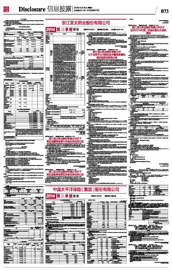 证券代码:002370 证券简称:亚太药业 公告编号:2014-047 浙江亚太药业股份有限公司2014第三季度报告 2014-10-25 来源:证券时报网 作者: