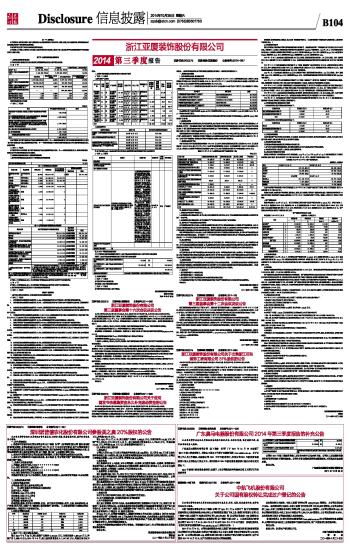 浙江亚厦装饰股份有限公司2014第三季度报告 2014-10-25 来源:证券时报网 作者: